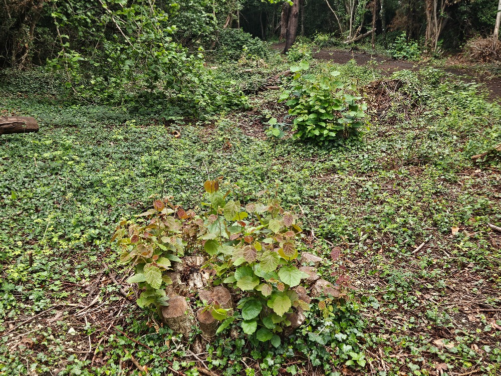 Earlier this year, The Conservation Volunteers (TCV) and Friends carried out hazel coppicing on the Hurst, and the results are now clearly visible. The coppiced hazel stools are bursting with new shoots, some already reaching 2–3 feet in height.